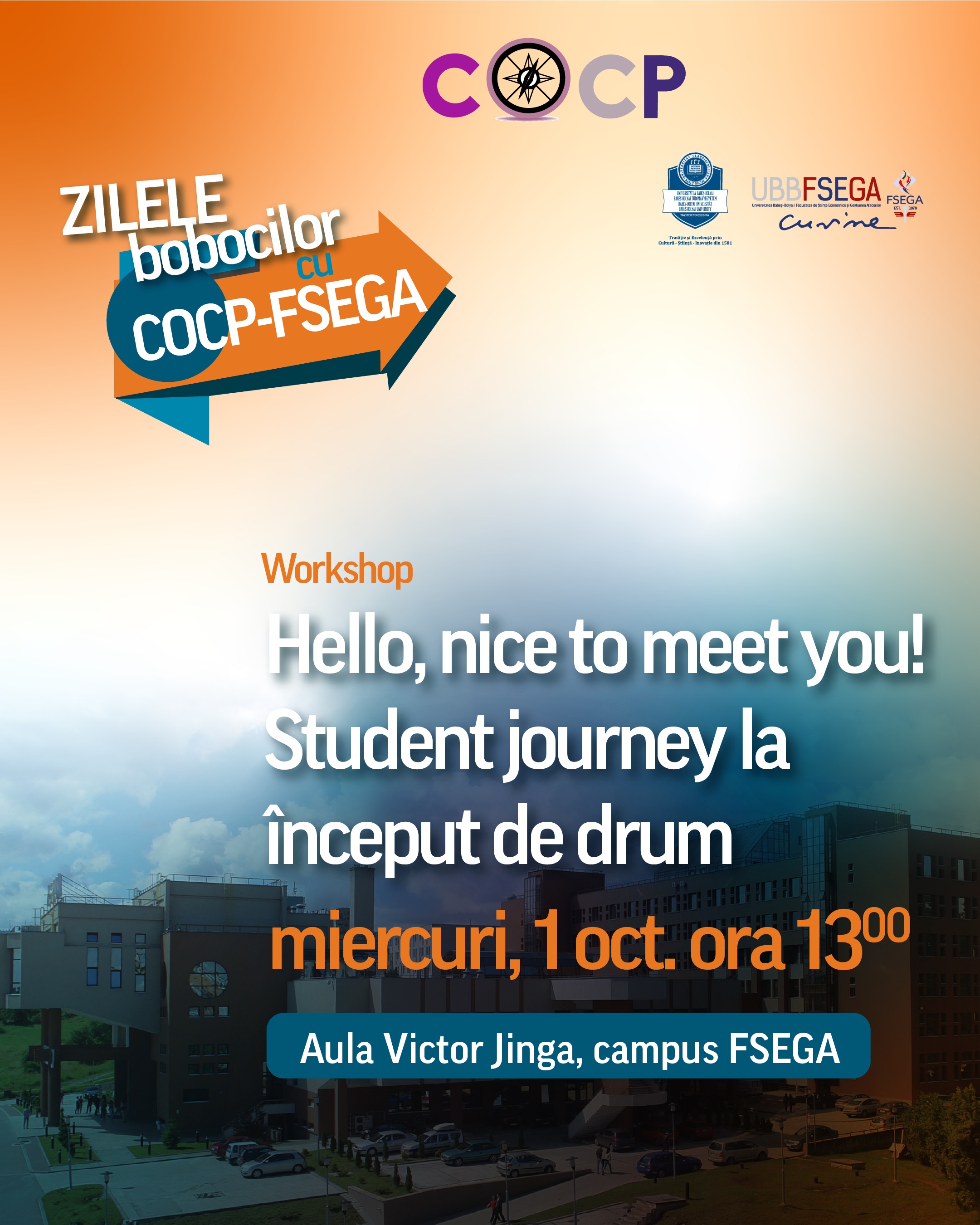 • Hello, nice to meet you! Student journey la început de drum - miercuri, 01.10.2025 , orele 13:00 – 14:00