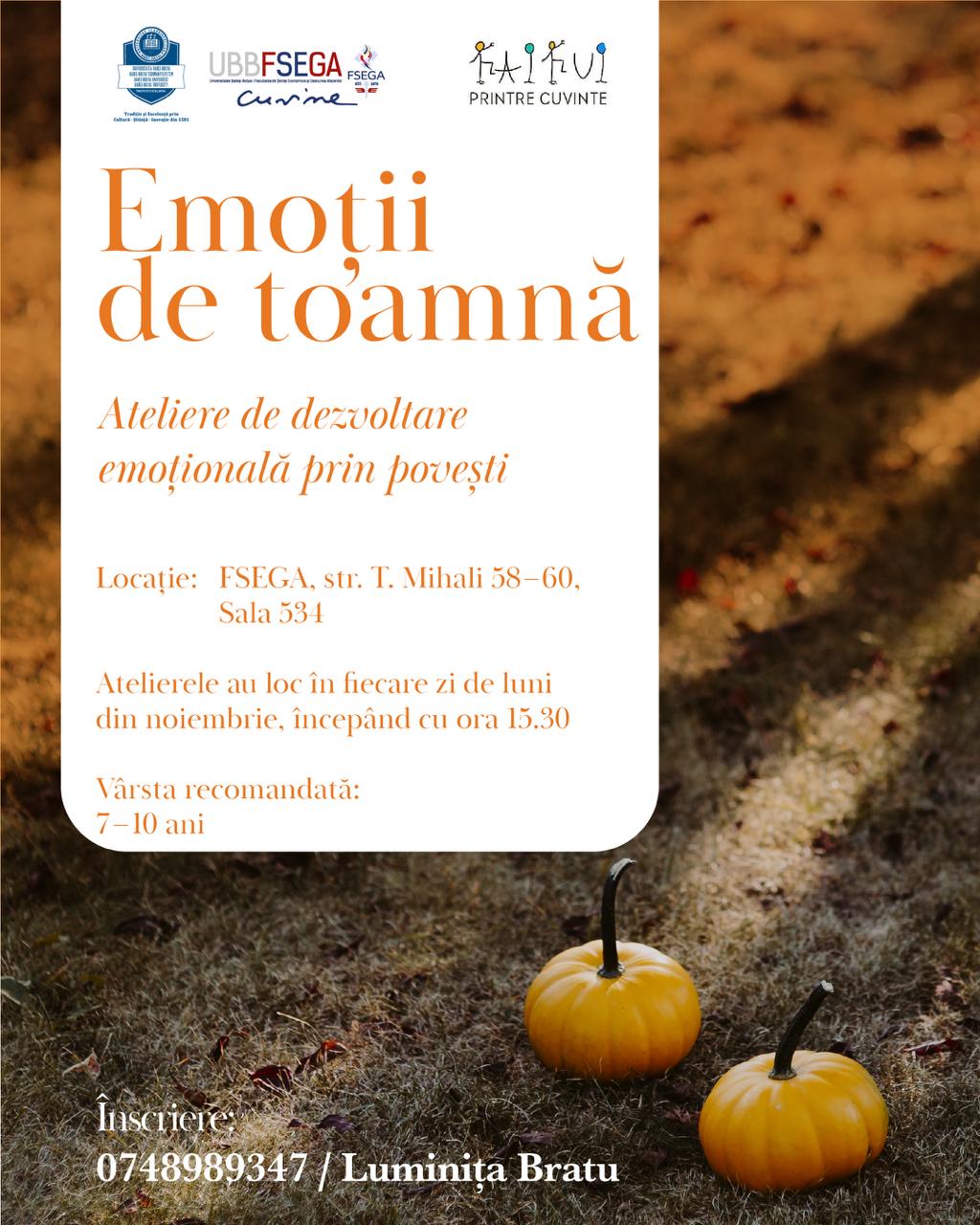 Fundația Printre cuvinte în colaborare cu Facultatea de Științe Economice și Gestiunea Afacerilor din cadrul UBB organizează atelierele de dezvoltare emoțională prin povești Emoții de toamnă.