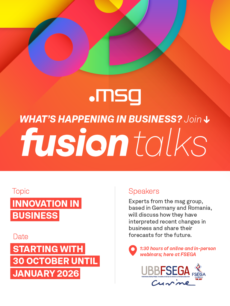 ๐ฎ๐ฌ๐ข๐จ๐ง ๐๐๐ฅ๐ค๐ฌ - a series of interactive webinars developed through the collaboration between UBB-FSEGA and .๐ฆ๐ฌ๐ ๐๐จ๐ฆ๐ฬ๐ง๐ข๐ - brings academia and business together to share insights, explore new ideas, and inspire the next generation of leaders.