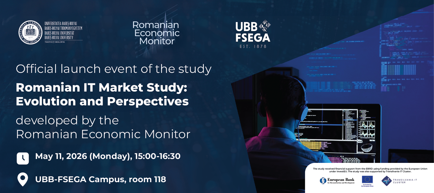 Universitatea Babeș-Bolyai, Facultatea de Științe Economice și Gestiunea Afacerilor (UBB-FSEGA) în cooperare cu Banca Europeană pentru Reconstrucție și Dezvoltare (BERD) și Transilvania IT Cluster organizează evenimentul de lansare oficială a studiului intitulat Romanian IT Market Study: Evolution and Perspectives elaborat de echipa Romanian Economic Monitor, un laborator de cercetare al Universității Babeș-Bolyai din Cluj-Napoca.