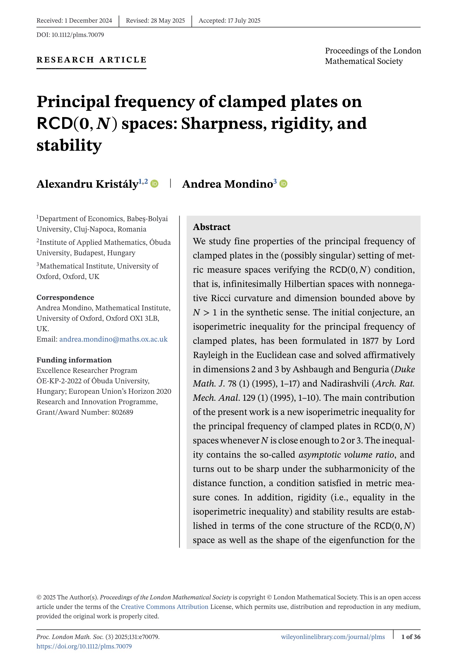 Kristaly, A. & Mondino, A. (2025) Proceedings of the London Mathematical Society [Matematică, Q1]