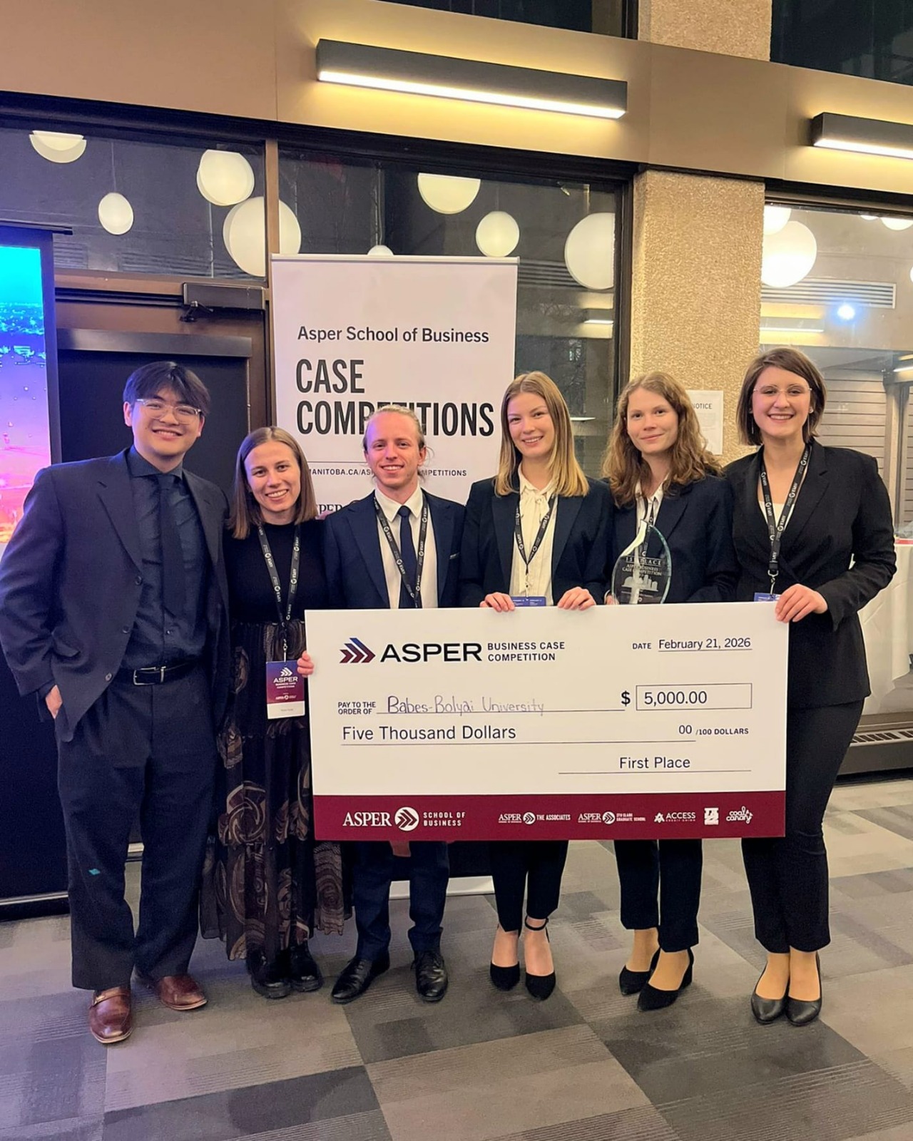 Studenții de la masterat ai Facultății de Științe Economice și Gestiunea Afacerilor a Universității Babeș–Bolyai (UBB-FSEGA) din Cluj-Napoca au obținut un succes internațional deosebit: echipa studențească a câștigat ediția din 2026 a Asper Business Case Competition, competiție găzduită de University of Manitoba, Asper School of Business, în Winnipeg, Canada. Concursul destinat studenților MBA și masteranzi s-a desfășurat în perioada 18–21 februarie 2026, iar echipa UBB a obținut premiul I, devansând pe podium echipe de la două universități canadiene, McMaster University și HEC Montréal. Prin această performanță, echipa clujeană a câștigat și marele premiu al competiției, în valoare de 5.000 de dolari canadieni.